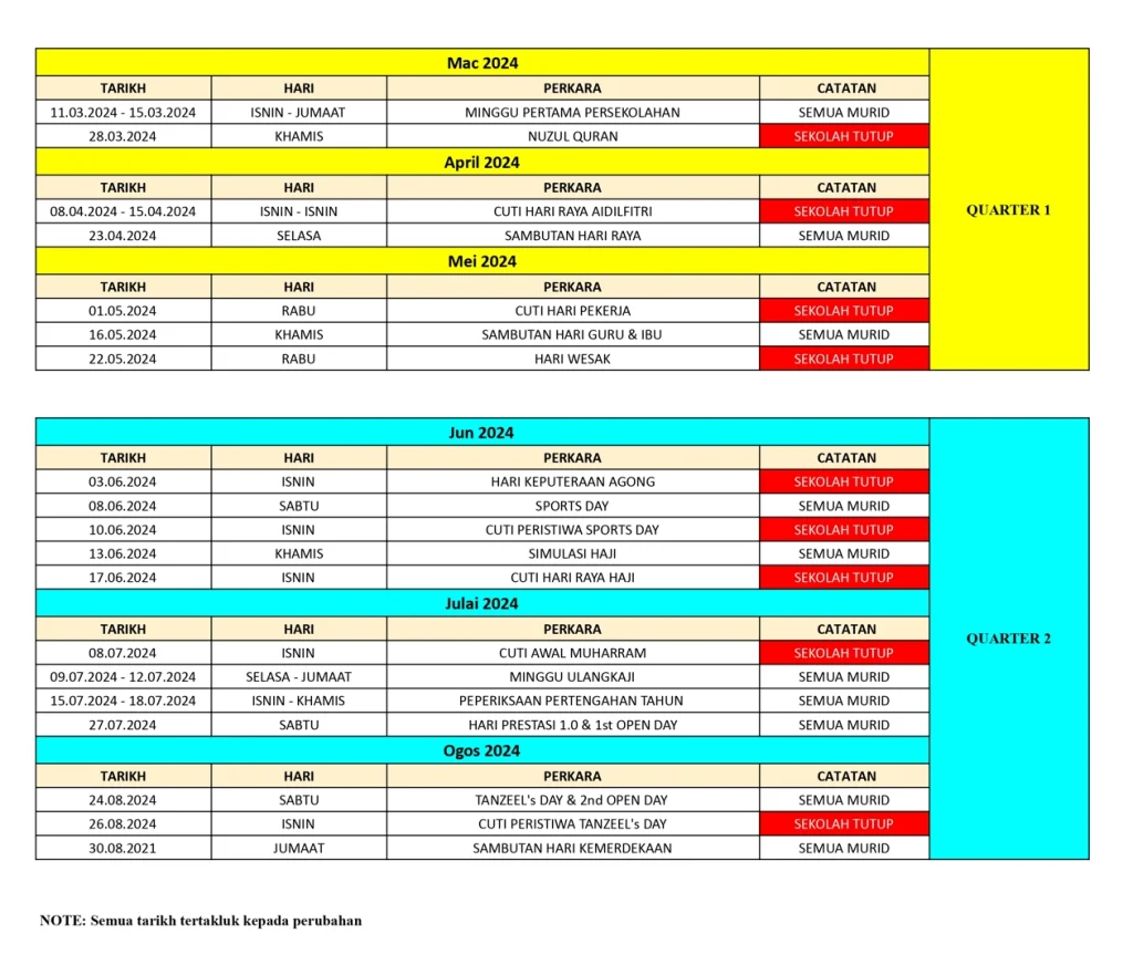 Berikut Jadual Persekolahan Attanzeel Sesi (24/25)